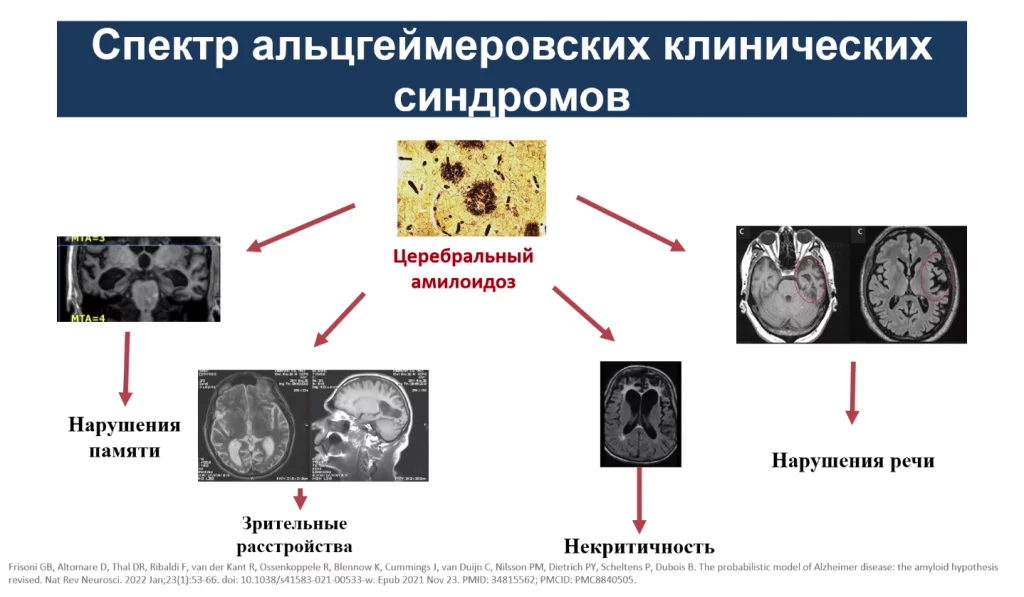 Таким образом, если церебральный амилоидоз преимущественно начинается с передних отделов мозга, то клиника будет неотличима от лобно-височной дегенерации: