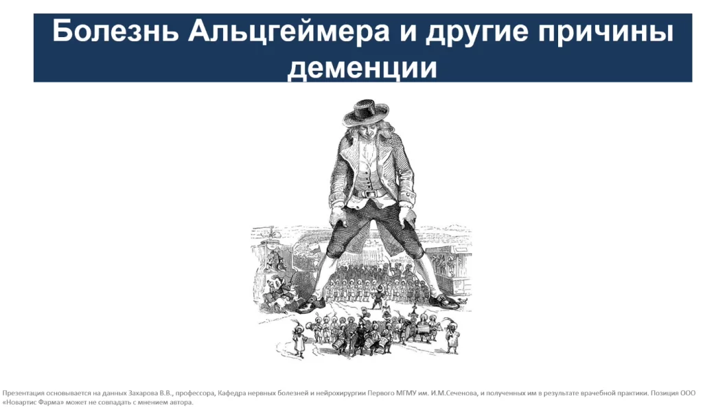 Соотношение между болезнью Альцгеймера и другими причинными деменциями примерно такое, как на рисунке ниже - это соотношение Гулливера и лилипутов.