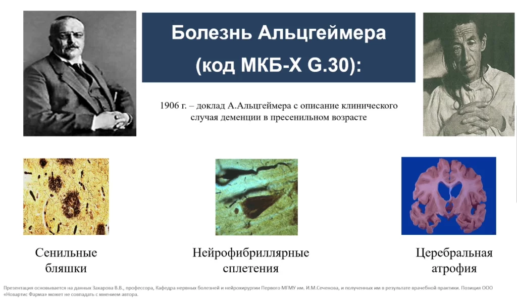 Это заболевание, которое было в свое время описано германским психиатром, морфологом (в то время все клиницисты занимались и патоморфологией- делали патоморфологическое исследование своим умершим пациентам). Алоис Альцгеймер описал случай преждевременной, как тогда говорили, деменции, потому что в те времена думали, что деменция может быть своевременной и преждевременной.