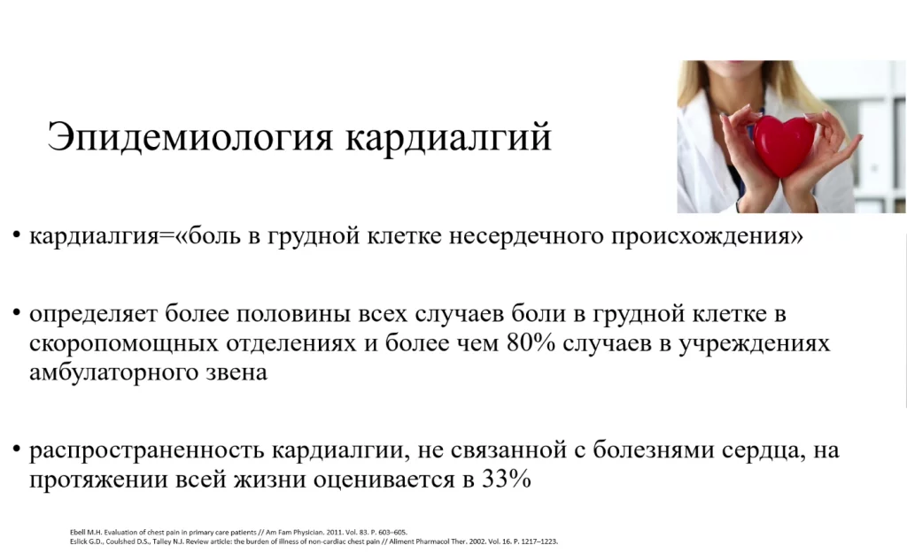 Если говорить про расходы для здравоохранения, то за рубежом считается, что каждый год более семи миллионов посещений отделений неотложной помощи связаны с тем, что у пациента кардиалгия, и он обращается с болью в области сердца. У врачей общей практики- 27 миллионов посещений приходится по поводу жалоб пациента в области грудной клетки.