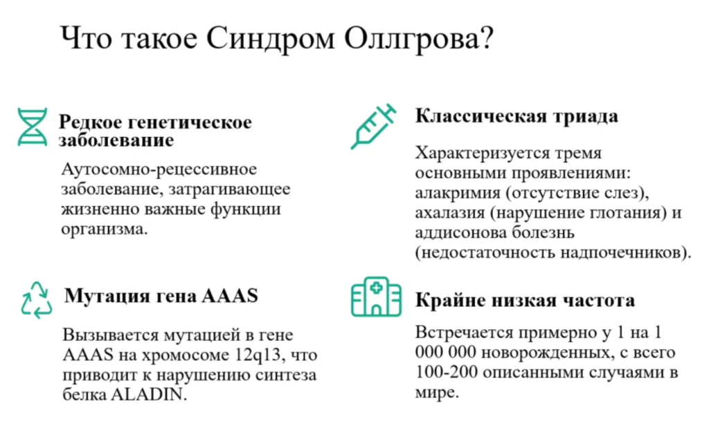 Заболевание характеризуется мутацией в гене AAAS на хромосоме 12q13, что приводит к нарушению синтеза белка ALADIN.